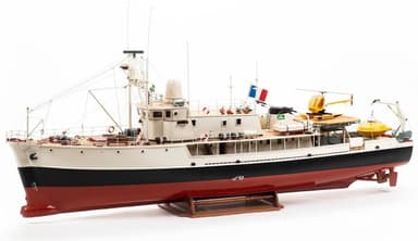 Billing Boats her med et 1/45-skala trebyggesett av Calypso, en minesveiper, redningsbåt og observasjonsbåt.Läs mer om produkten