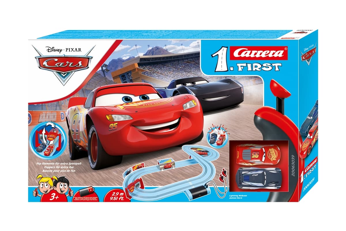 Analog bilspår i skala 1:43 för de yngsta med bilarna från filmen Cars 3, med legenden Lightning McQueen och ärkerivalen Jackson Storm.Läs mer om produkten