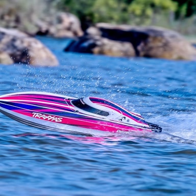Traxxas her med Disruptor SR! Denne 66cm lange båten har en toppfart på 65km/t+ og kommer med Traxxas Self righting som hjelper deg hvis du er uheldiLäs mer om produkten
