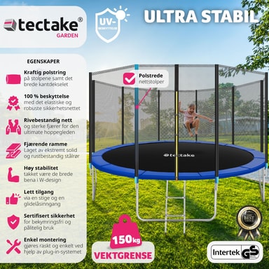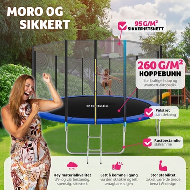 Denna studsmatta med skyddsnät blir snabbt familjens favorit! Med hög spänst och starka stålfjädrar garanterar den maximal hoppglädje.Läs mer om produkten