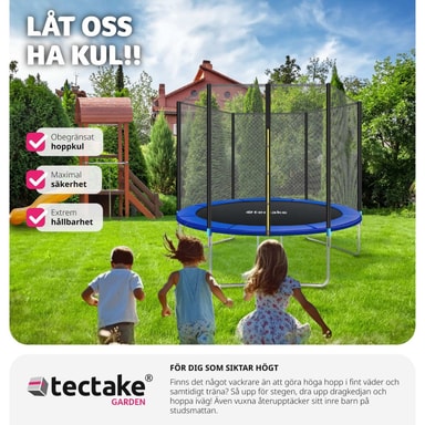 Denna studsmatta med skyddsnät blir snabbt familjens favorit! Med hög spänst och starka stålfjädrar garanterar den maximal hoppglädje.Läs mer om produkten