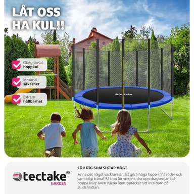 Denna studsmatta med skyddsnät blir snabbt familjens favorit! Med hög spänst och starka stålfjädrar garanterar den maximal hoppglädje.Läs mer om produkten