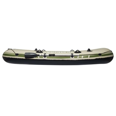 Denna Bestway Voyager 500 Hydro-Force uppblåsbara båt är perfekt för en kort utflykt med en kompis. Denna uppblåsbara båt är tillverkad av vinyl, vilket gör den robust och hållbar. Båten är praktisk och utrustad med robusta årklykor och spännen för dina åror. Ett omslaget grepprep med inbyggda ringar gör att det blir lättare att binda flotten till bryggan eller båten. Det kraftiga handtaget och dragringen möjliggör enkel transport. Dess uppblåsbara golv och sittdynor bidrar till ultimat komfort. När du väl är dockad och redo att åka hem kan du snabbt tömma din båt med luftningsventilen och förvara den i den medföljande väska. Material: PVC Mått uppblåst: 348 x 141 cm (L x B) Mått tömd: 361 x 165 cm (L x B) Maximal viktkapacitet: 260 kg Maxpassagerare: 3 vuxna Skruvventiler för snabb uppblåsning/tömning Säkerhetsventil 3 luftkammare Grepprep runtom med inbyggda öljetter Uppblåsbart I-balkgolv för komfort och stabilitet Uppblåsbart golv för extra komfort Uppblåsbara sittdynor Inbyggda hållare för fiskespön Slitstarka handtag Robusta årtullar ä…rklyvor Integrerade fiskespöhållare Bogserring Med två 1,45 m sektionsåror i aluminium Bestway artikelnummer: 65001 Vid leverans ingår: 1 x Båt 1 x Par åror 1 x Reparationslapp 1 x Förvaringspåse