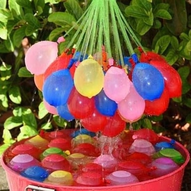 Varför hålla på och krångla med att fylla varje enskild ballong när det finns såhär smidiga lösningar? Alla som någon gång har lekt med vattenballonger vet att halva lektiden kan gå åt att fylla ballongerna. Trist, tycker vi! Kom igång med det skojsiga snabbare genom att fylla flera dussin ballonger på en och samma gång istället! Totalt får du 111 st snabbfyllande vattenballonger. Smart, enkelt och prisvärt! Perfekt inför sommarens vattenkrig