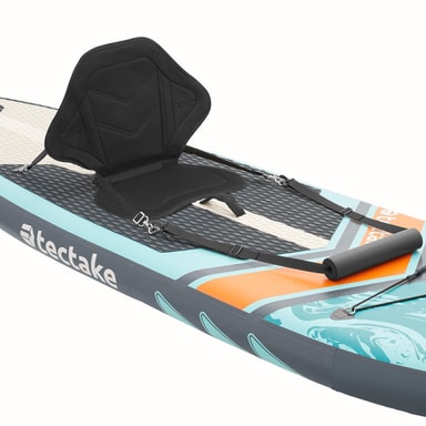 Utrustad med en halkfri yta, garanterar denna SUP bräda, att du har ett extremt säkert och stadigt grepp. Genom den praktiska fotremmen förblir brädan hos dig även om du skulle ramla överbord. Den medföljande vadderade kajaksitsen med fotstöd, som kopplas med 4 robusta D-ringar, möjliggör för dig att flexibelt utforma din paddelupplevelse – sittande eller stående.
