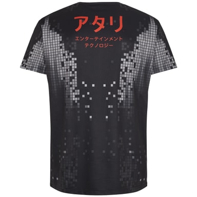 Svart T-shirt med Atari logotyp på framsidan, japansk text på baksidan med 8-bits design. Perfekt för eSport. 100% polyester, storlek XXL motsvarar Europeisk storlek 56.