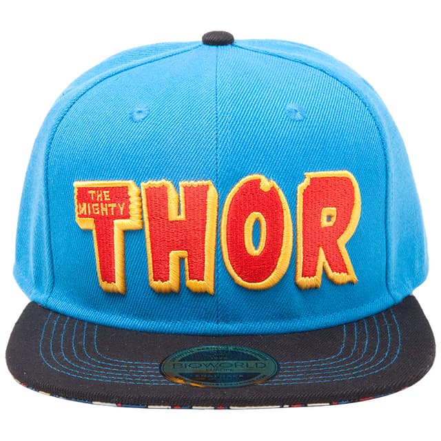 Svart och blå keps med flerfärgad The Mighty Thor design på framsidan. 100% bomull, universell storlek.