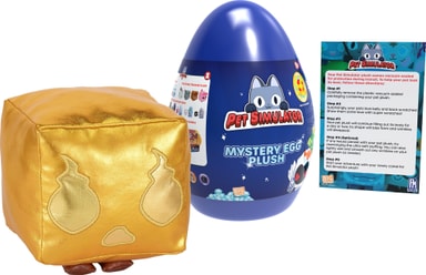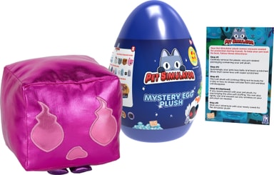 Kläck ett ägg och hitta din plyschleksak med mjukdjuret Pet Simulator. Varje ägg innehåller en 20 cm hög mjukleksak från populära spel. Det kan vara vilket som helst av de 9 djuren, och du får en DLC-kod med varje paket.