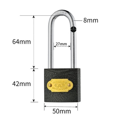 Överlägsen säkerhetslösning: Detta 50mm långa bygel järnhänglås erbjuder en robust säkerhetslösning för en mängd olika applikationer. Dess förlängda bygel ger ökad flexibilitet vid säkring av föremål där standardhänglås kanske inte når. Den solida järnkonstruktionen säkerställer motståndskraft mot manipulering och forcerad ingång, vilket gör den idealisk för att säkra grindar, skjul, förråd och andra värdesaker. Den svarta finishen ger ett lager av diskretion samtidigt som den skyddar järnet från väder och vind, vilket säkerställer långvarig prestanda och tillförlitlighet. Detta hänglås är ett kostnadseffektivt sätt att förbättra dina säkerhetsåtgärder.