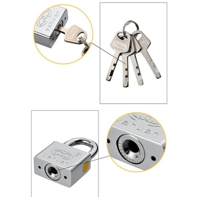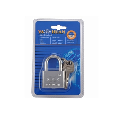 Väderbeständig: Tillverkat av högkvalitativt järn med en silverfinish, är detta hänglås designat för att motstå väder och vind. Dess väderbeständiga konstruktion säkerställer att den kan användas utomhus utan rädsla för rost eller korrosion. Oavsett om du behöver säkra en grind i din trädgård eller en förrådsenhet i en fuktig miljö, kommer detta hänglås att ge pålitlig säkerhet. Den silverfärgade finishen förbättrar inte bara dess utseende utan ger också ett extra lager av skydd mot väder och vind. Detta hänglås är byggt för att hålla, vilket ger långvarig säkerhet i alla miljöer. Dess robusta konstruktion och väderbeständiga design gör den till det perfekta valet för utomhusapplikationer.