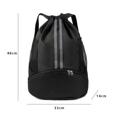 Mångsidiga förvaringsalternativ: Med ett huvudfack, sidofickor och en blixtlåsförsedd ficka framtill erbjuder denna ryggsäck gott om förvaringsutrymme för alla dina nödvändigheter, inklusive basketbollar, vattenflaskor, handdukar och personliga tillhörigheter.