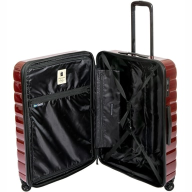 Självklart helfodrad inredning med packband och avdelare, som underlättar för dig när du packar. Fast TSA-lås. Expanderbar. Fyra tystgående hjul. Helt integrerat teleskophandtag.