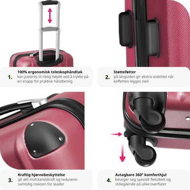 Teleskophandtagen gör det enkelt att dra väskorna, även vid tunga laster, och minskar belastningen på armar och axlar.