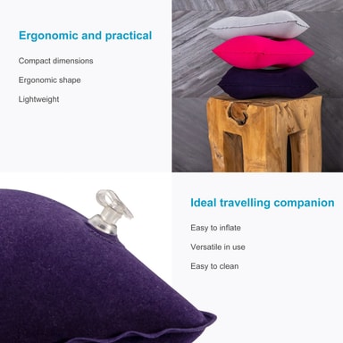 DESIGN: Denna kudde är uppblåsbar och därför lätt att transportera. Den är särskilt praktisk på resan, på stranden eller helt enkelt hemma. Ett måste i varje hushåll!