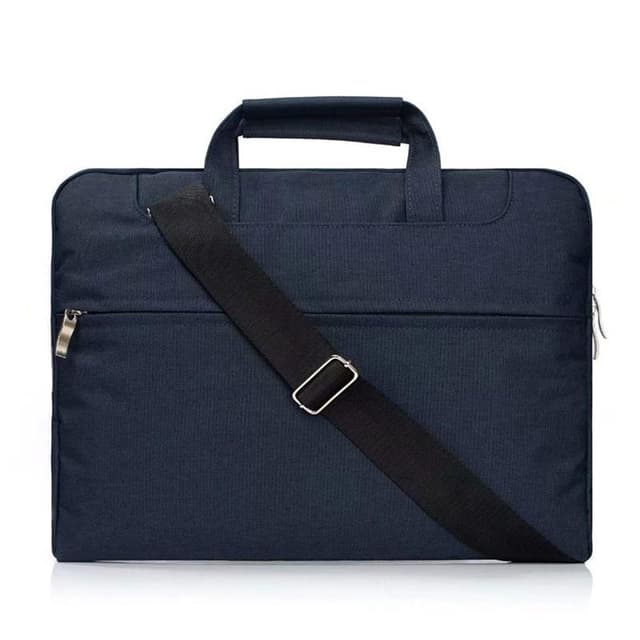 Laptopväska med axelrem som gör det smidigt att ta med laptopen och andra tillhörigheter när du ska till jobbet eller skolan. Den snygga väskan är gjord i mörkblått tyg och har svarta remmar - en tidlös och svårslagen färgkombination som lyckas vara både neutral och unik.