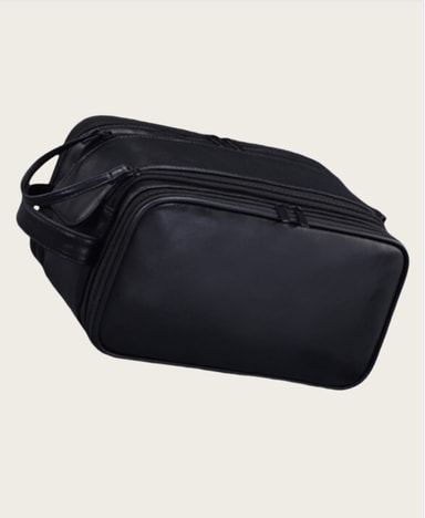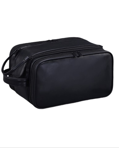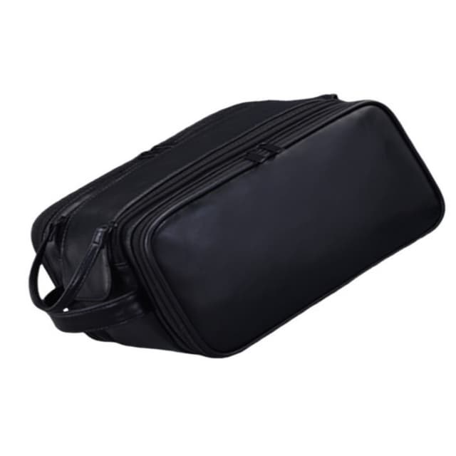 • Necessär i Läder med Dubbel Dragkedja Svart