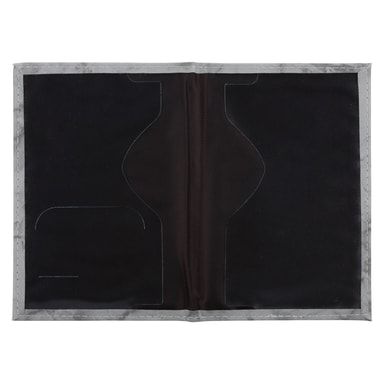 Materialet i konstläder mäter 14 x 10.2 x 0.7 cm och finns i svart, vitgrått, grått, blått och rosa.