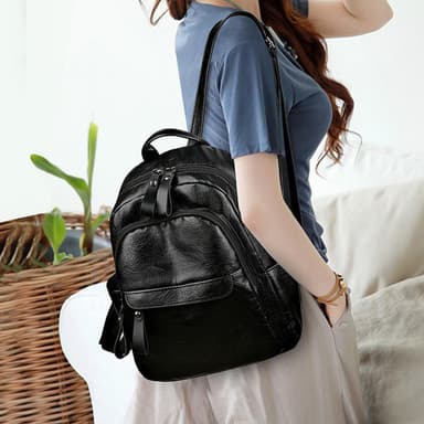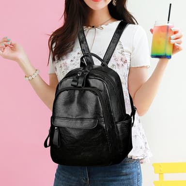 Chic och Mångsidig: Denna svarta ryggsäck blandar sömlöst mode och funktionalitet, vilket gör den till en idealisk accessoar för olika tillfällen. Oavsett om du är på väg till skolan, jobbet eller en avslappnad utflykt, kompletterar dess eleganta design vilken outfit som helst. Den mjuka PU-läder exteriören utstrålar sofistikering, medan den rymliga interiören ger gott om plats för dina väsentligheter. Bär dina tillhörigheter med stil och gör ett uttalande vart du än går med denna mångsidiga ryggsäck.