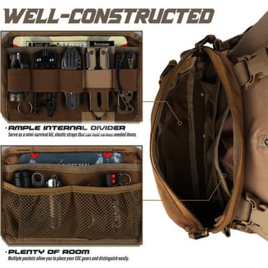 Slitstark och vattenavvisande: Denna taktiska väska är tillverkad av högkvalitativt Oxford-tyg, vilket säkerställer långvarig prestanda i krävande utomhusförhållanden. Den är utformad för att tåla slitage och samtidigt effektivt stöta bort vatten, vilket håller dina tillhörigheter säkra och torra.