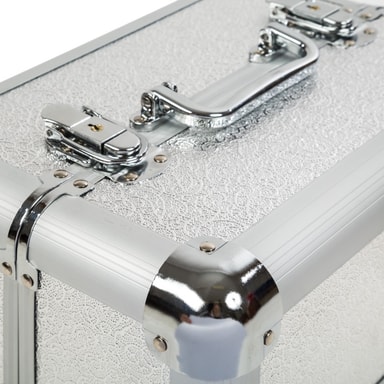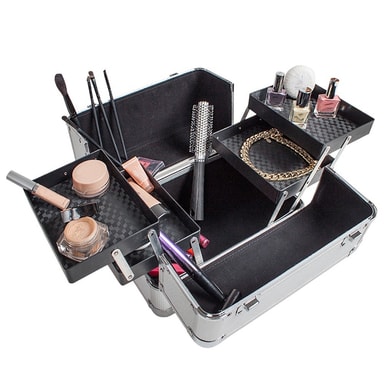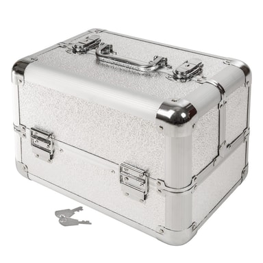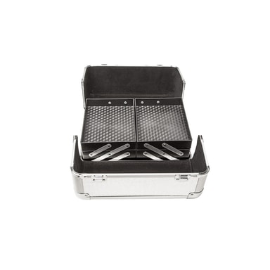 Denna sminkväska blir snabbt din nya favorit för förvaring av smink och accessoarer. Med fyra stora, utfällbara fack erbjuder den gott om plats för alla typer av skönhetsprodukter, samtidigt som dina saker hålls välorganiserade och prydligt sorterade. Väskan är låsbar för extra säkerhet och har en insida klädd i stilig svart velour för extra elegans. Väskan är perfekt som sminkväska, necessär, frisörväska eller för andra produkter – en mångsidig och stilren lösning för både proffs och entusiaster.