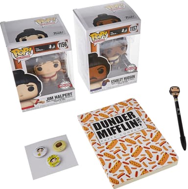 Skaffa denna Funko POP The Office samlingsbox med actionfigurer och få ett perfekt tillskott till din samling, med två vinylfigurer, ett anteckningsblock, en penna och tre pins i en displaybox med design från den populära serien The Office.Läs mer om produkten