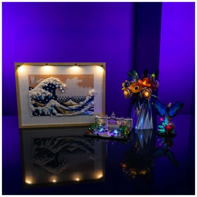 Light My Bricks™ Decor-ljuskit förvandlar LEGO®-konst med fyra varmvita lampor och färgglada astro-lampor, vilket skapar levande displayer med diskret och enkel installation.Läs mer om produkten