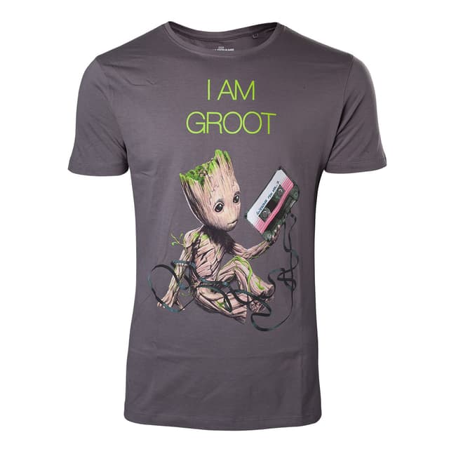 Grå T-shirt med Guardians of the Galaxy - Groot Cassette tema. 90% bomull och 10% polyester, storlek L som motsvarar Europeisk storlek 52.Läs mer om produkten