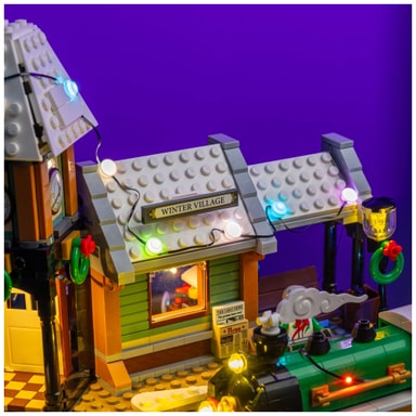 Inkluderat är två flerfärgade astro-ljusslingor, perfekta för att dekorera julgranar, takrännor och tak. Dessa ljus tillför livfulla färgklickar till dina LEGO®-utställningar.