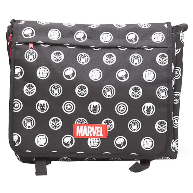 Bär med dig dina saker med Marvel Comics Heroes Crests väska med coolt Marvel Heroes crest tryck. Väskan har ett stort fack, dragkedja på locket och dubbla extra fack på locket samt justerbar vadderad axelrem. 100% polyester.Läs mer om produkten