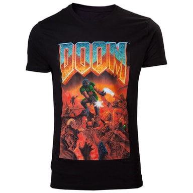 Svart T-shirt med klassiska Doom -temat. 100% bomull, storlek L motsvarar europeisk storlek 52.Läs mer om produkten