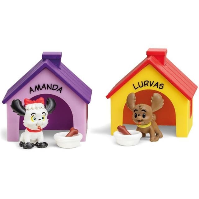 Hundarna har varsin hundkoja, matskål och ett gott ben att tugga på. Detta figurset passar perfekt för lek i Bamsebyn där figurerna kan hälsa på i varandras hus och leka i Bamses värld. Missa inte de andra Bamsefigurerna från Micki Leksaker, till exempel med Lurvas retkompisar Katten Jansson och Husmusen som bor hos Bamses farmor högt uppe på Höga Berget.