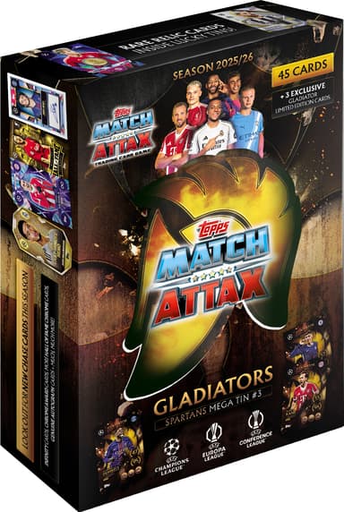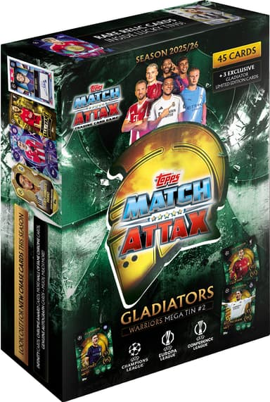 Topps Premier League Attax Champions League Mega Tin samlarkort innehåller totalt 48 kort, inklusive 3 Limited Edition-kort. I utvalda burkar finns även chansen att hitta sällsynta Manufactured Relic-kort eller extra sällsynta Jersey Relic-kort.Läs mer om produkten