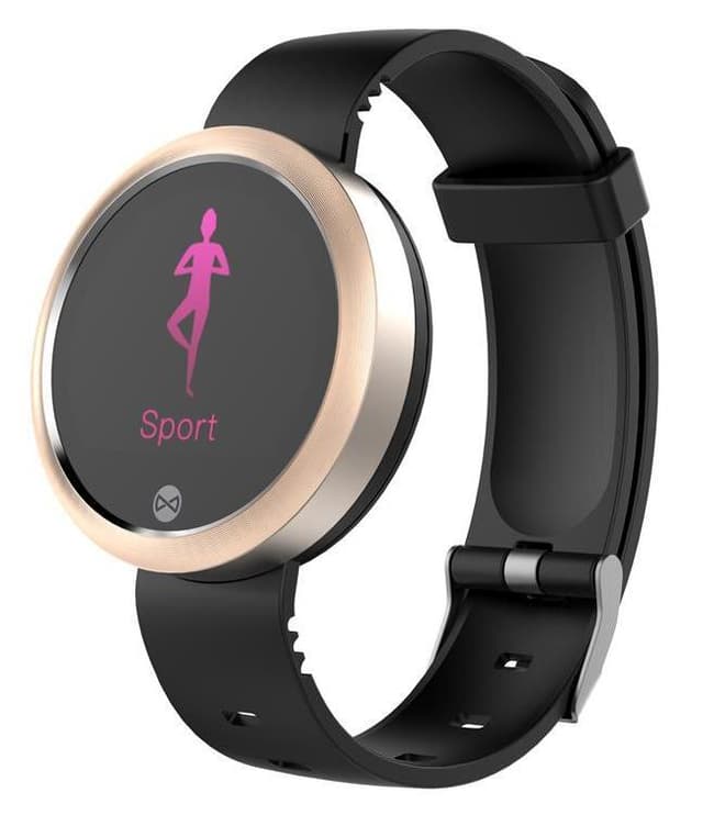 Färg: Roséguld Display: 1,04"" Färgdisplay med 240x198px upplösning med justerbar ljusstyrka Teman: 3 olika teman Batteritid: 5-7 dagar arbetstid eller 10-15 dagar standby Multisportläge: Ja, stöd för sporter som löpning, gång, cykling, klättring, fotboll, badminton, tennis, basket m.m Blodtrycksmätare: Ja Möjlighet att fjärrstyra mobilkameran Stoppur: Ja Inbyggt minne för 5 meddelanden Visar antal steg, avstånd och förbrända kalorier Klockslag, datum, namn och telefonummer-visning Meddelanden: påminnelser, samtal, SMS, e-post, sociala medier Musikuppspelningskontroll Anti-lost funktion Alarm funktion med vibration Pulsometer Sömnövervakning Applikationen använder GPS i telefonen för att hitta klockans aktuella position på kartan. Mått: c:a 35x10mm Armbandets längd: 240mm Vikt: 25g Batteri: 120mAh Bluetooth 4.2 Processor Nordic nFR52832 Vibration: Ja Vattentäthet: IP67 klassificering (kan vara under vatten en kort stund och kan användas utan problem vid regn) Android 4.4 eller senare, iOS 8.0 eller senare