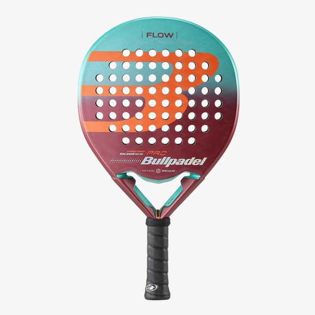 Precis som samtliga BULLPADELS PRO LINE-racketar är dessutom FLOW utrustat med vibrationsdämpningssystemet VIBRADRIVE som består av ett silikonmaterial som ligger längs hela handtaget. Handledsremmen är tillverkad av ett bredare och skönare material i stället för det traditionella snöret. En transparent ramskyddstejp medföljer som sätts på för att skydda racketets kanter mot slag och stötar och därmed öka hållbarheten. Racketytan är av relieftyp för att ge ”grepp” vid slicade slag. Det går också att sätta på det innovativa ergonomiska greppet HESACORE som minskar vibrationerna som ev kan ge upphov till """"padelarmbåge"""". Till racketet medföljer ett racketfodral med termostoppning för att skydda racketet mot temperaturskillnader.
