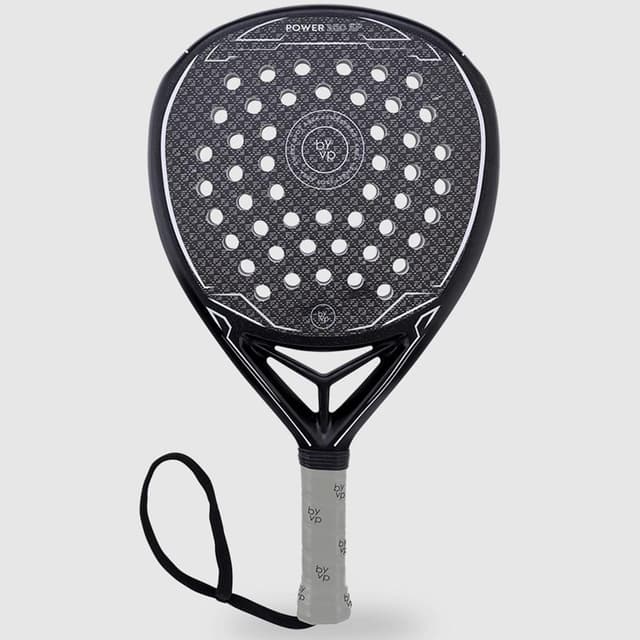 By-VP Padel Racket Diamant Power 300 är ett diamantformat padelracket med en elegant svart design med vita accenter. Racketen har en kolfiberram med en kärna av glasfiber i. Diamant form Racketen har en diamantformad design.