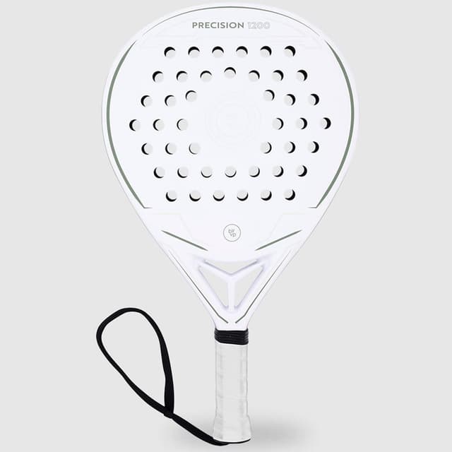 By-VP Padel Racket Drop Precision 1200 är ett droppformat padelracket med en elegant vit design med gröna accenter. Racketen har en kolfiberram med en kärna av glasfiber i. Teardrop form Racketen har en droppformad design.