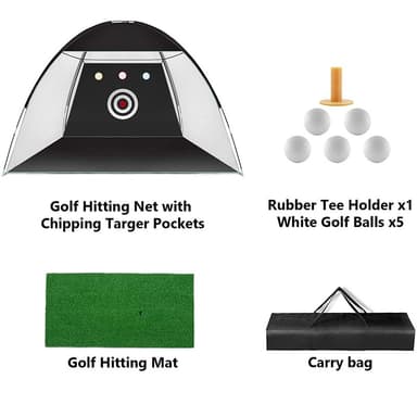 Förbättra ditt golfspel med detta omfattande golfnätset för chippning. Detta set innehåller ett chippnät, en slagmatta, träningsbollar och en peg, vilket ger det mesta du behöver för att öva ditt korta spel.Läs mer om produkten