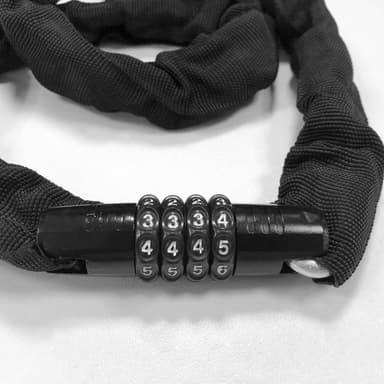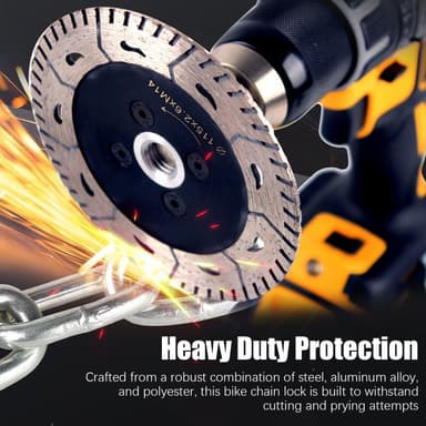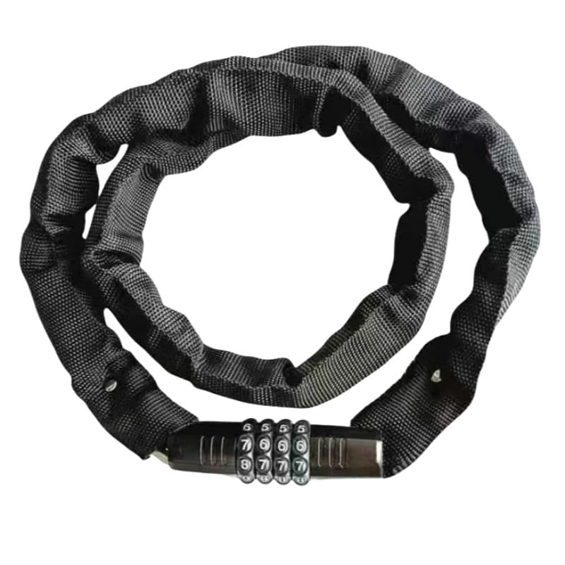 Kraftigt skydd: Tillverkat av en robust kombination av stål, aluminiumlegering och polyester, är detta cykelkedjelås byggt för att motstå skär- och bändningsförsök, vilket säkerställer din cykels säkerhet.