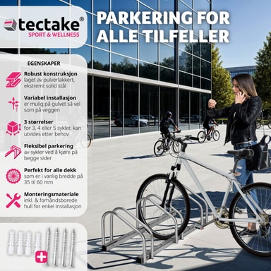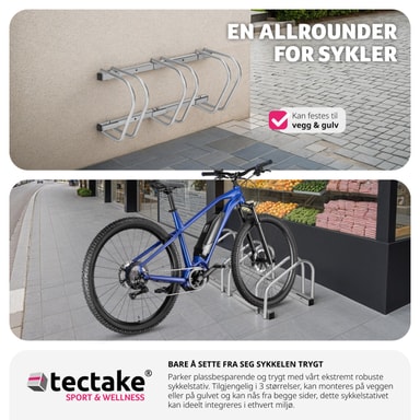 Cykelställ av hög kvalitet från tectake för förvaring av cyklar! Med detta cykelställ kan du parkera dina cyklar på ett litet utrymme. Cykelhållaren ger dina cyklar optimalt stöd. Tack vare borrhålen kan du montera cykelstället på marken eller på väggen. Cykelstället utmärker sig genom sin goda kvalitet. Cykelstället är lämpligt att använda både inom- och utomhus. Beställ ditt nya cykelställ från tectake redan idag.