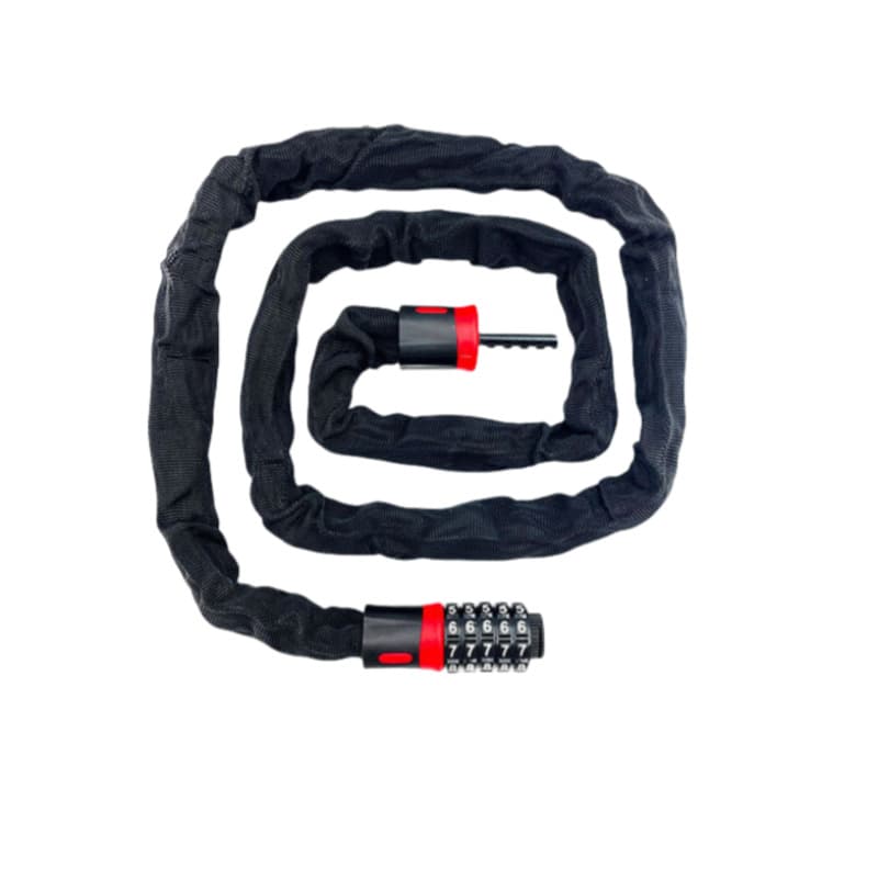 Mångsidig och bärbar design: Detta kedjelås ger tillräckligt med räckvidd för att säkra din cykel till olika fasta föremål. Dess kompakta storlek och lätta design gör det enkelt att bära och förvara när det inte används.