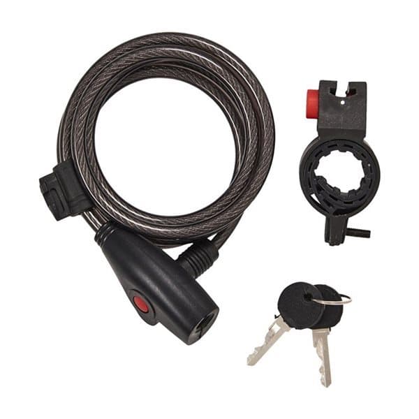 Rawlink Vajerlås till cykel - Plastöverdraget spirallås i kraftig kvalitet - Med 2 nycklar - Mått: Ø8×1500 mm - Inklusive hållare för montering på cykelram