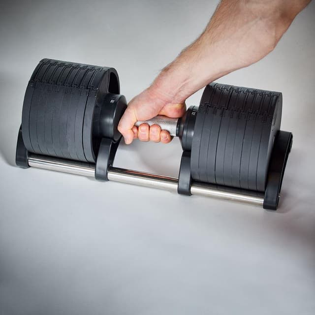 Kraftmarks justerbara hantlar är det perfekta alternativet för dig som vill ha ett helt hantelset som inte tar någon plats. Du får 9 st hantlar i en och samma hantel, det enda du behöver göra är att vrida handtaget till önskad vikt mellan 2-32kg.