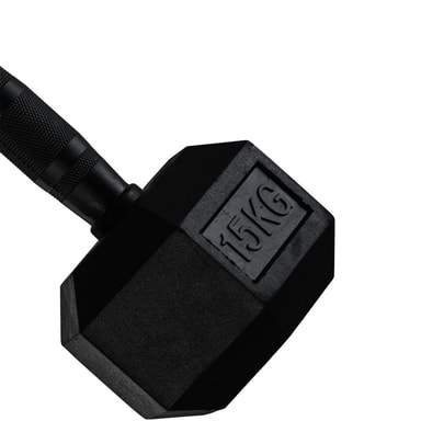 Dessa 6-kantiga hantlar som har blivit till klassiska träningsredskap för både hem och gym – kommer här i ett ännu mer påkostat utförande. Denna modell har även det ergonomiska greppet i gummi – vilket ger ett bra grepp om handtaget även när man börjar bli svettig. Dessutom blir greppet inte lika kallt som ett traditionellt metallgrepp. Formen på hantlarna gör att de ligger stadigt utan att rulla undan och kan med fördel användas om man exempelvis vill gör push-ups på golvet. Hantelserien erbjuds från 1 till 30 kg. Gummiklädda hantlar har alltid en svag doft när de är helt nya – men detta avtar när de fått ligga öppet under en tid. Master använder alltid gummi av hög kvalitet för sina träningsredskap. En stor fördel med gummiklädda hantlar är att de är tystlåtna utan att ge en massa skrammel, samt att de är skonsamma mot golv och underlag.