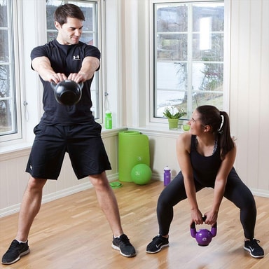 Svartlackerad KettleBell i gjutjärn med gummerad botten som skyddar golvet.Läs mer om produkten