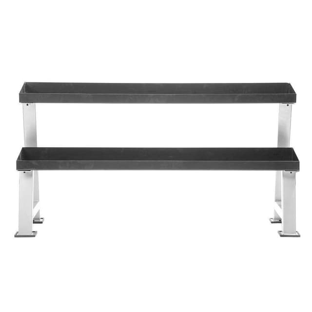 Ett Kettlebell Ställ som ger snygg och praktisk förvaring. Håll ordning och reda på din träningsutrustning med detta rack. Specifikationer Vikt: 42 kg Längd: 150 cm Bredd: 51 cm Höjd: Nedersta hyllan: 36 cm, översta 71 cm.