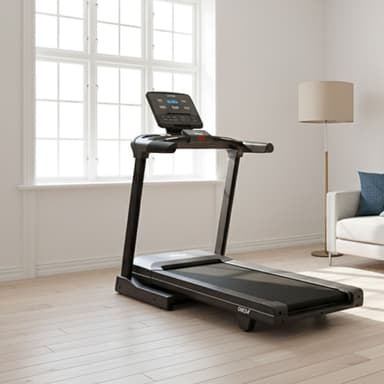 Motoreffekt: 3 hk (DC 180V). Hastighet: 1-22 km/h. Lutning: 0-15%. Skärm: 7-tums LCD. Hastighet och lutning justerbar via knappar. Träningsprogram: 12 st. Löpyta: 51x140 cm. Stötdämpning: 6 st. Handpuls: Ja. MP3-högtalare: Ja. Soft drop-system: Ja. Hopfällbar: Ja (vertikal). Transporthjul: Ja. App-anslutning: Kinomap och Zwift. Max användarvikt: 150 kg. Produktvikt: 90 kg. Uppställningsstorlek: 205 x 92 x 154 cm. Hopfälld storlek: 130 x 92 x 169 cm.