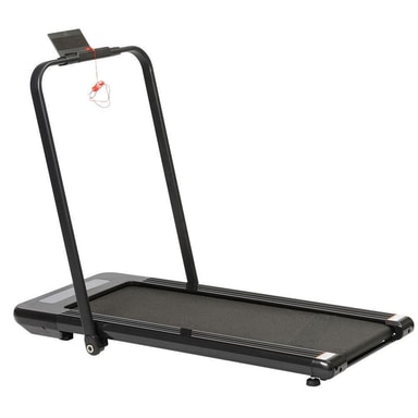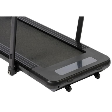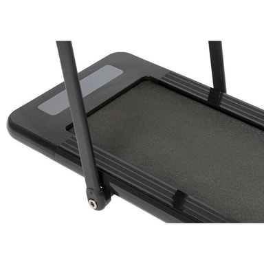 Gåband W15 är ett mycket kompakt gåband som levereras färdigmonterat i ett platt paket. Behöver man extra stöd och något att hålla fast i är det medföljande stödhandtaget enkelt att fästa på gåbandet genom att skruva fast den på varje sida.