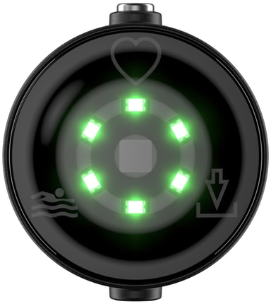 Tack vare WR50 vattentålighetsklassningen kan du använda mätaren för att spåra din data när du simmar. Sensorn erbjuder data för distans, tempo, vändningar, djup och puls.