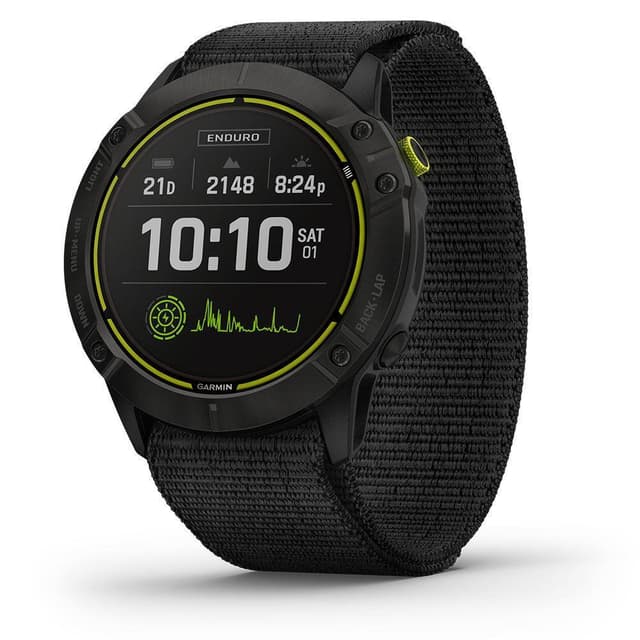 UTFORMAD FÖR TÄVLING Enduro har en 1,4″-skärm som alltid är påslagen och som är läsbar i solljus. Enkel och tydlig att läsa, även ute på träning. Och den har en massa högpresterande träningsfunktioner och en supereffektiv processor som gör att du kan fokusera på loppet i stället för på batteritiden. FRAMTAGEN FÖR ATT HÅLLA Den robusta, vädertåliga designen är anpassad för krävande tävlingsförhållanden, med infattning i rostfritt stål eller i lätt, reptålig titan täckt av diamantliknande kol. Dessutom har den ett superlätt sportarmband som är elastiskt, justerbart och tåligt. SOLENERGILADDAT BATTERI Få upp till 80 timmars batteritid i GPS-läge, upp till 300 timmar i maximalt batteriläge och upp till 65 dagar i smartwatch-läge med solenergiladdning. Med powermanager får du även en överblick på hur inställningar och sensorer påverkar klockans batteritid. PRESTATIONSDATA Visa avancerade träningsdata som omfattar löpdynamik, VO2 Max justerat efter värme och höjd, återhämtningsrådgivare och mer: VO2 MAX FÖR TERRÄNGLÖPNING ULTRALÖPNING CLIMBPRO MTB-DYNAMIK ÅTERHÄMTNINGSRÅDGIVARE DAGLIGA FÖRSLAG PÅ TRÄNINGSPASS Enduro erbjuder många fler funktioner utöver dessa! STÖD FÖR MULTI-GNSS Få åtkomst till flera globala nätverkssatellitsystem (GPS, GLONASS och Galileo) för att hjälpa dig att navigera i mer krävande miljöer än med enbart GPS. NAVIGERINGSSENSORER Navigera nästa rutt med ABC-sensorer, inklusive höjdmätare för höjddata, barometer för väderövervakning och 3-axlad elektronisk kompass. PULSMÄTNING VID HANDLEDEN Optisk puls-teknologi mäter aktivitetsintensitet och pulsvariabilitet för att beräkna din stressnivå. Den spårar även under vatten utan pulsband. PULSE OX-SENSOR AVANCERAD SÖMNREGISTRERING ENERGIÖVERVAKNING MED BODY BATTERY™ ANDNINGSREGISTRERING VÄTSKEKONTROLL SÄKERHETS- OCH SPÅRNINGSFUNKTIONER Om du känner dig osäker eller om din klocka känner av att en olycka har inträffat skickar funktionerna för assistans och händelsedetektering din plats till en nödkontakt. Dessutom har du smarta funktioner som aviseringar från smartphones, trådlösa betalningar med garmin pay och connect IQ.