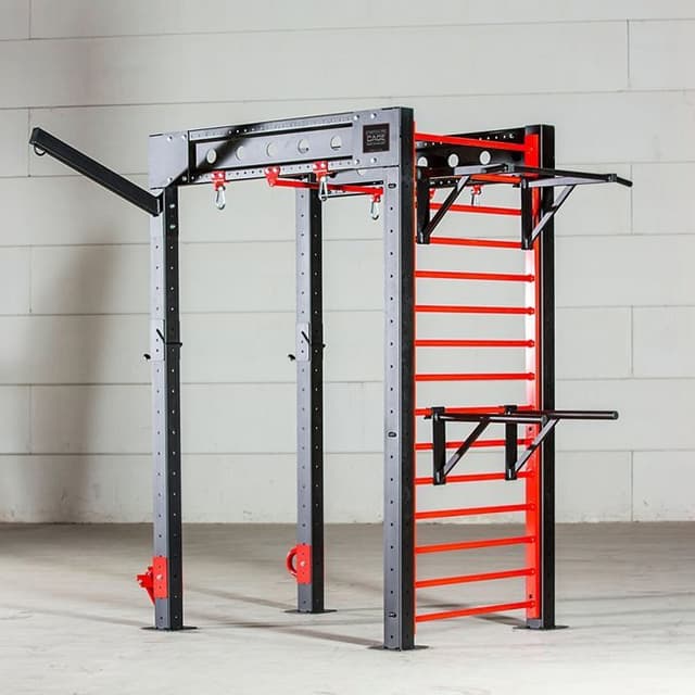Crosstraining Cage kommer med ribbstol, chinräcke och dipräcken (båda snabbt höjdjusterbara och borttagbara) samt 2 Monkey bars för upphängning av träningslinor, romerska ringar, gummiband etc. Ställningen har också skivstångsupplägg, T-bar-ställning för internationell viktstång, rejält stålfäste för battle rope samt ställning för boxningssäck – alla snabbt höjdjusterbara och borttagbara. Även 4 st kraftiga karbinhaken för fästning av andra redskap medföljer.